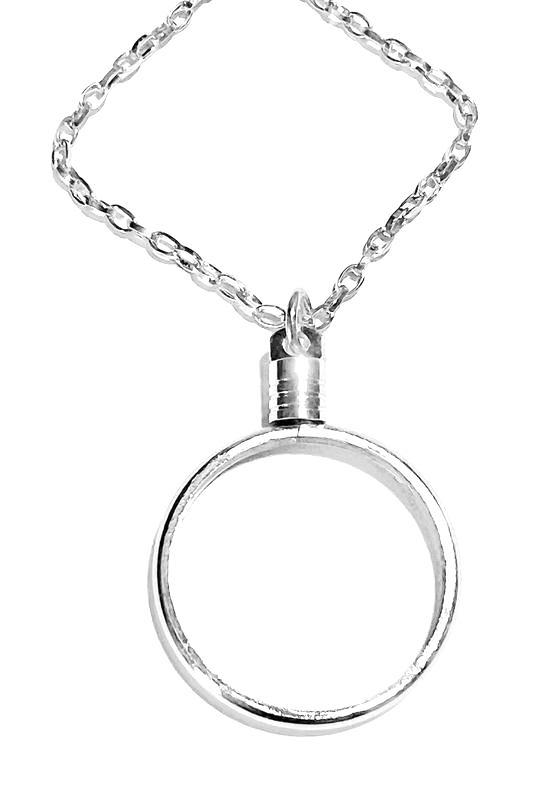 New and improved. Very durable metal bezel necklace with 18" chain. Two sided, displays both front and back of your favorite coin. Turn your special coin into a treasured necklace. Makes a great gift!