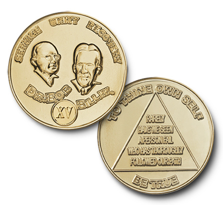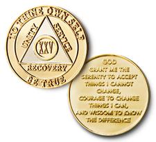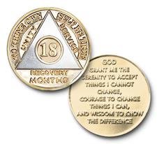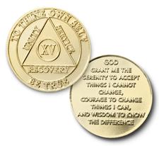 Bi-Plate / Gold Finish / Silver Finish Anniversary Coins have the Serenity Prayer on the reverse side.